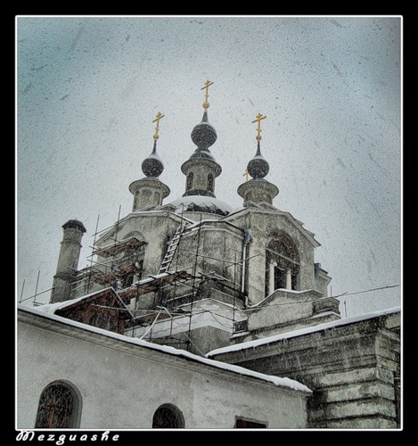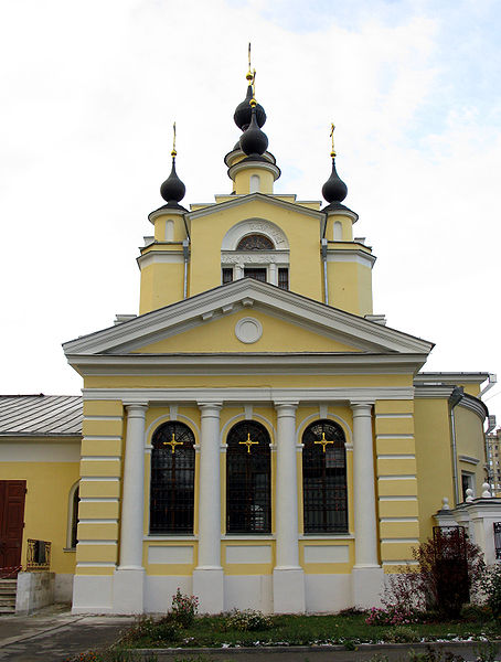 2.Краткая историческая справка: Деревянный Покровский храм, стоящий на ручье Ольховце, известен с 1620 года, придел святителя Николая впервые упоминается в 1697 году. 1701 году был построен новый каменный храм. В 1730 году слева к Покровскому храму был пристроен придел Усекновения главы Иоанна Предтечи. К 1751 году у храма появилась колокольня и обширная трапезная. Обновлённый Покровский храм был освящён 25 августа 1751 года. Во время московских пожаров 1812 года храм не пострадал. С течением времени церковь ветшала и к 1838 году, на средства почётных граждан Гаврила Никитича Урусова и Евдокии Григорьевны Малютиной, было проведено её обновление. Храм получил новое многоглавое завершение, новый шпиль для колокольни, украшения для фасада в стиле ампир, обновлённый внутренний интерьер и великолепный главный иконостас. Последнее обновление храма происходило в 1902—1904-х годах.[3] Советский период В 1920—1930-х годах в Покровском храме часто совершал службы и архиерейские хиротонии заместитель патриаршего местоблюстителя, впоследствии Патриарх Сергий (Страгородский). В 1931 году появилась резолюция, согласно которой церковь предлагалось закрыть и снести, так как она расположена слишком близко к проезжей части и мешает пешеходам. Верующие из близлежащих районов отправили в Моссовет множество писем с просьбой не закрывать храм. В 1934 году храм был закрыт и частично разрушен. Была разобрана ограда, выступающая на тротуар алтарная апсида, барабаны куполов и колокольня. В перестроенном здании храма долгое время размещались различные организации. С 1966 года — Завод «КЭМЗ» (завод киноэлектромеханической аппаратуры), в 1980—1990 годах — Центральное конструкторское бюро Министерства легкой промышленности по производству игрушек. Возрождение храма В 1996 году в полуразрушенном состоянии. Покровский храм был передан Русской Православной Церкви. В 1997 году одновременно с началом восстановительных работ в храме начались богослужения. Летом 2002 года был завершён важный этап восстановительных работ — водружена центральная главка с крестом. Также вокруг здания храма и около церковной ограды был удалён культурный слой, в некоторых местах его уровень достигал 1,8 метра. К лету 2003 года работы по реставрации откопанной белокаменной ограды были завершены. В это же время были снесены подсобные помещения вокруг храма и приведена в порядок прилегающая территория. В октябре 2004 года, к празднику Покрова Пресвятой Богородицы, были сняты перегородки между трапезной частью храма и четвериками, таким образом, было открыто всё внутреннее пространство храма. В 2009 году были покрашены фасады храма, что явилось завершающим этапом наружных реставрационных работ.
