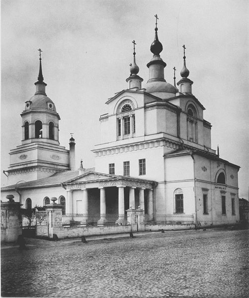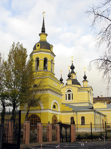 Деревянный Покровский храм, стоящий на ручье Ольховце, известен с 1620 года, придел святителя Николая впервые упоминается в 1697 году. 1701 году был построен новый каменный храм. В 1730 году слева к Покровскому храму был пристроен придел Усекновения главы Иоанна Предтечи. К 1751 году у храма появилась колокольня и обширная трапезная. Обновлённый Покровский храм был освящён 25 августа 1751 года. Во время московских пожаров 1812 года храм не пострадал. С течением времени церковь ветшала и к 1838 году, на средства почётных граждан Гаврила Никитича Урусова и Евдокии Григорьевны Малютиной, было проведено её обновление. Храм получил новое многоглавое завершение, новый шпиль для колокольни, украшения для фасада в стиле ампир, обновлённый внутренний интерьер и великолепный главный иконостас. Последнее обновление храма происходило в 1902—1904-х годах.[3] Советский период В 1920—1930-х годах в Покровском храме часто совершал службы и архиерейские хиротонии заместитель патриаршего местоблюстителя, впоследствии Патриарх Сергий (Страгородский). В 1931 году появилась резолюция, согласно которой церковь предлагалось закрыть и снести, так как она расположена слишком близко к проезжей части и мешает пешеходам. Верующие из близлежащих районов отправили в Моссовет множество писем с просьбой не закрывать храм. В 1934 году храм был закрыт и частично разрушен. Была разобрана ограда, выступающая на тротуар алтарная апсида, барабаны куполов и колокольня. В перестроенном здании храма долгое время размещались различные организации. С 1966 года — Завод «КЭМЗ» (завод киноэлектромеханической аппаратуры), в 1980—1990 годах — Центральное конструкторское бюро Министерства легкой промышленности по производству игрушек. Возрождение храма В 1996 году в полуразрушенном состоянии. Покровский храм был передан Русской Православной Церкви. В 1997 году одновременно с началом восстановительных работ в храме начались богослужения. Летом 2002 года был завершён важный этап восстановительных работ — водружена центральная главка с крестом. Также вокруг здания храма и около церковной ограды был удалён культурный слой, в некоторых местах его уровень достигал 1,8 метра. К лету 2003 года работы по реставрации откопанной белокаменной ограды были завершены. В это же время были снесены подсобные помещения вокруг храма и приведена в порядок прилегающая территория. В октябре 2004 года, к празднику Покрова Пресвятой Богородицы, были сняты перегородки между трапезной частью храма и четвериками, таким образом, было открыто всё внутреннее пространство храма. В 2009 году были покрашены фасады храма, что явилось завершающим этапом наружных реставрационных работ.
