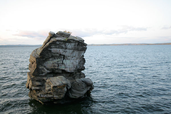 В юго-восточной части озера находится интереснейший каменный останец – Шайтан-Камень, являющийся памятником природы. Он торчит из воды в нескольких десятках метров от берега. Это главная достопримечательность озера Иткуль, притягивающая многочисленных туристов. К сожалению, сейчас каменный останец сильно обезображен надписями.