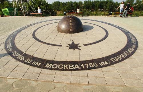 Интересный заказ воплощен в жизнь в рамках программы «Кунгур – центр культуры Пермского края» Пермским фондом скульпторов. Фигура установлена на городской смотровой площадке у памятника первопроходцам Кунгурского края, изготовлена она из гранита в форме полусферы, расположенной на покатом постаменте.