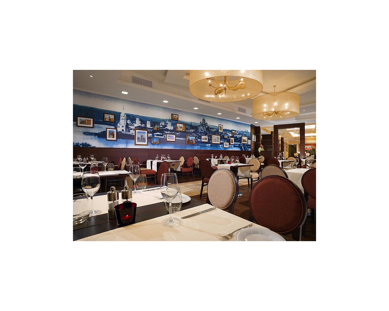 Каждое утро(с 7:00 до 10:00)в ресторане отеля проходит завтрак "шведский стол", включенный в стоимость проживания. Гости могут выбрать один из трех вариантов меню завтрака: классический буфет, разнообразный американский завтрак или диетический ассортимент "Здоровое начало дня". Также действует специальное предложение для комплексных бизнес-ланчей и большой выбор блюд и напитков на ужин.