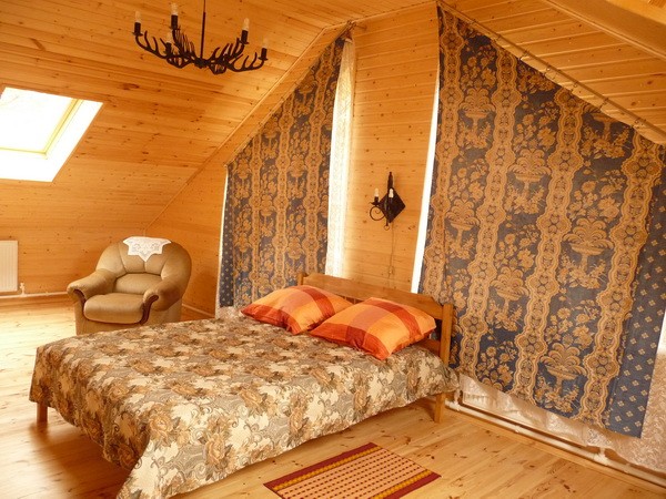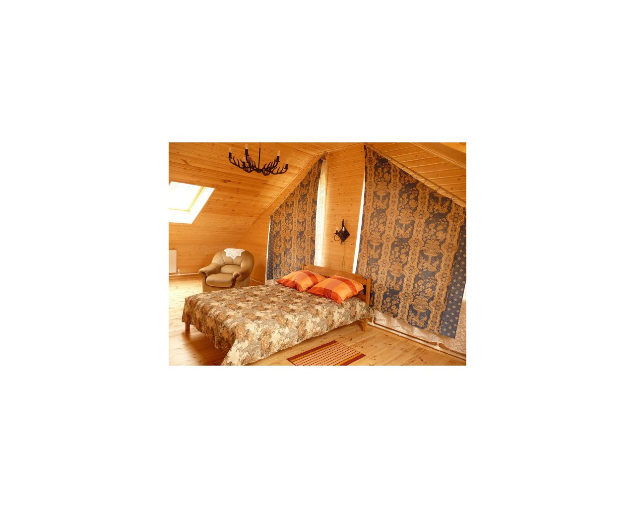 Комнаты №1 и №2 (мансардный этаж) – 2-х местное размещение (в каждой комнате двуспальная кровать, шкаф, вешалка, кресло, табуретки, тумбочки, душ, туалет, центральное отопление). Площадь комнат позволяет дополнительно установить по две раскладушки в каждой.