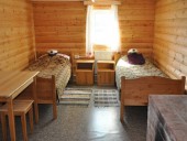 Четырехкомнатный гостевой домик № 2: комната № 1 - 3-х местное размещение с видом на причал, море и лес (три 1,5-спальные кровати, тумбочки, шкаф, стол, табуретки, вешалка, дровяная печка); комната № 2 - 2-х местная с видом на лес (две 1,5-спальные кровати, тумбочки, шкаф стол, табуретки, вешалка, дровяная печка; комната № 3 – для администрации фермы. № 4 – офис администрации фермы; комната