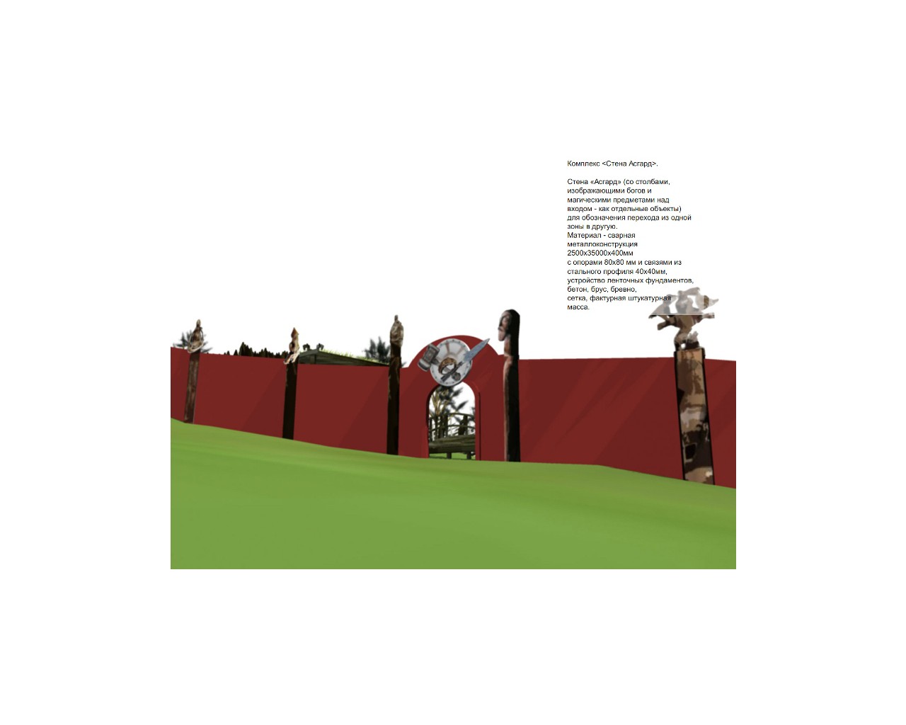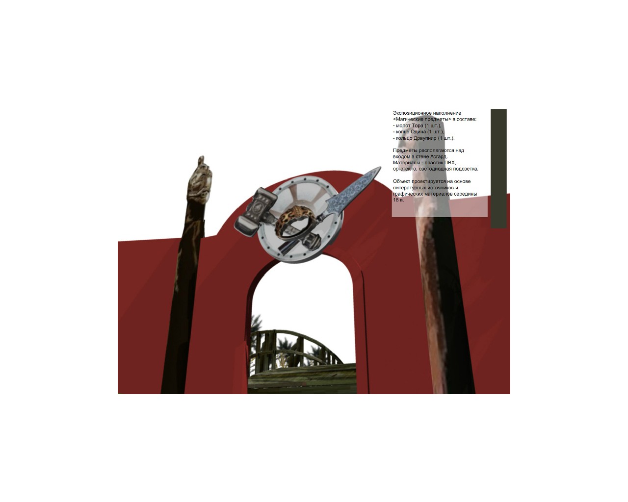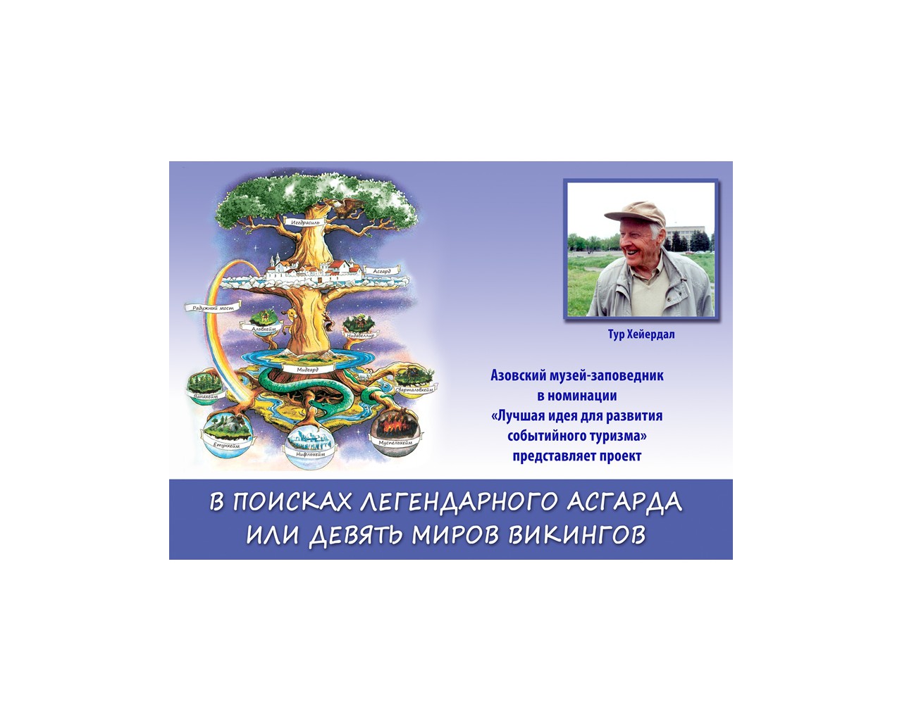 Проект нацелен на создание интерактивной экспозиции под открытым небом. В основе проекта – теория норвежского исследователя Тура Хейердала о существовании в I в. до н.э. на территории современного Азова легендарного города викингов – Асгарда, отправной точки переселения викингов в Скандинавию. В 2014 году ученому с мировым именем исполняется 100 лет со дня рождения. Знаменитый норвежец в 2001 году возглавил международную археологическую экспедицию в Азове, в ходе которой были обнаружены многочисленные находки. Но доказать свою теорию Тур Хейердал не успел. Азов – единственный российский город, в котором ученый проводил раскопки. Основная идея экспозиции - соединить вымысел и реальность, данные научных исследований и произведения скандинавского эпоса, воссоздать образ легендарного Одина и воинственных народов – асов и ванов. Планируемый музейный объект можно условно разделить на 3 раздела: 1) мемориальный комплекс, посвященный Туру Хейердалу, с репликами фондового собрания; 2) «этническая деревня скандинавов», состоящая из объектов осмотра: стилизованный дом викинга, дом гостя, плотницкая (с деталями для изготовления драккаров), кузница, конюшня, «волчья яма», импровизированная сценическая площадка с аудиозвуковыми инсталляциями; 3) игровая интерактивная зона «Девять миров викингов», знакомящая с мифологией скандинавов. Это путешествие в сказочные земли гномов и эльфов, карликов и великанов, асов и ванов, посещение миров огня и льда. Пещера тролля, долина великанов, домик колдуньи, жилище гномов, обитель эльфов – каждая интерактивная зона неповторима и привлекательна по-своему. Игровые зоны контрастны: свет и темнота, жара и холод, музыка и тишина. Необычные живые цветы, изобилие магических атрибутов, зрелищные спецэффекты. Здесь посетитель сможет присесть на стул тролля, подойти к волшебному очагу колдуньи, перебрать коллекцию минералов гномов, кинуть монетку исполнения желания в родник эльфов, прикоснуться к магии рун, открыть тайны девяти миров викингов. Идея проекта нетривиальна, не имеет аналогов на территории Российской Федерации. Идея жизнеспособна, есть территория и возможности по использованию уже существующей инфраструктуры.