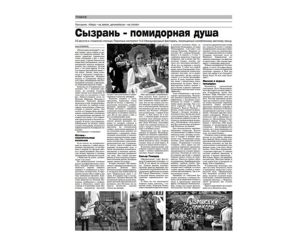Праздник «Сызранский помидор» - визитная карточка города Сызрань и гордость Самарской губернии! За годы проведения праздника слава о нем стала известна далеко за пределами нашей страны.Сызрань по праву величают Помидорной столицей Поволжья. Ведь такие вкусные и красивые помидоры растут только на сызранской земле. Праздник объединяет всех, развивает патриотизм и любовь к своей малой родине.
