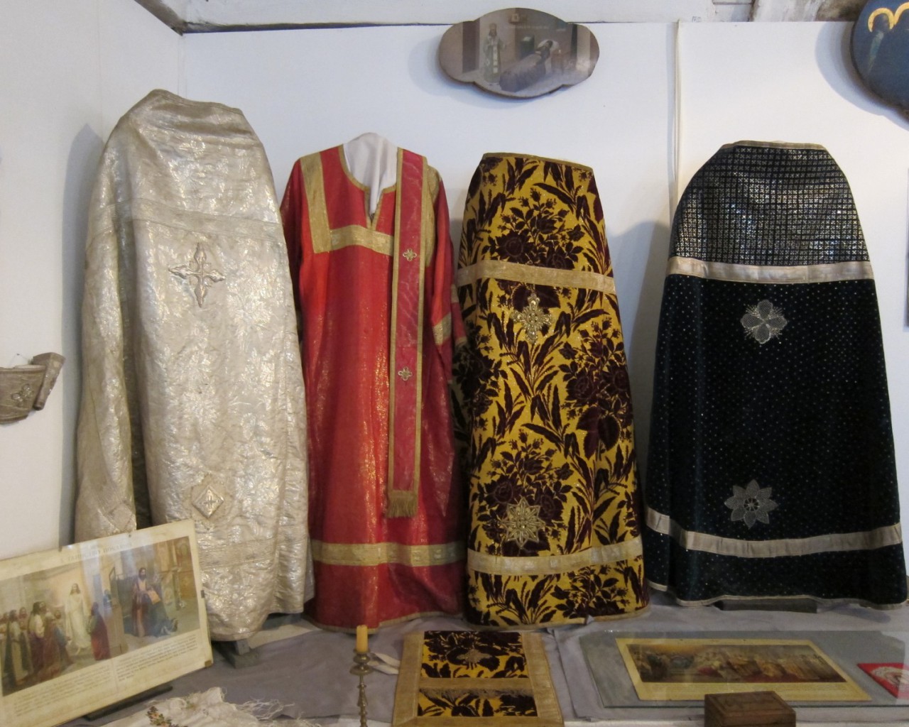 В экспозиции демонстрируются уникальные Святые плащаницы, расшитые серебряными и золотыми нитями, мельчайшим бисером, серебряными нимбами с аметистом и горным хрусталем; иконы и храмовая утварь, а также пермская деревянная скульптура. По плану-чертежу А. В. Федосеева — восстановлен иконостас на втором этаже.