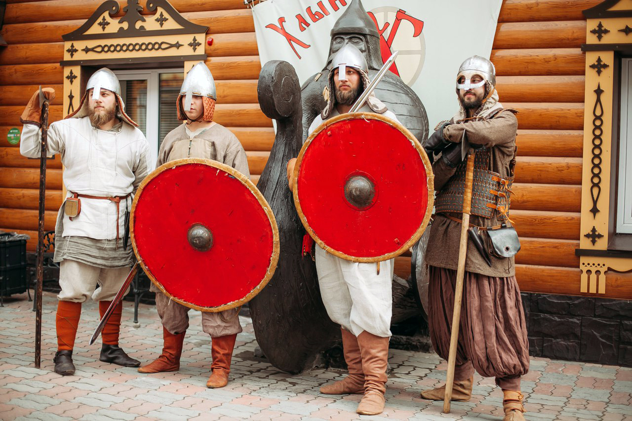 Представлены макеты древнего оружия и доспехов, которые можно подержать в руках и примерить. Рассказ о каждом экспонате.