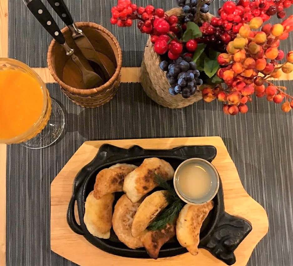 В это время на столах появляются кундюмы – своего рода пельмени с грибами. Гид приглашает гостей продегустировать это блюдо и рассказывает о нем.