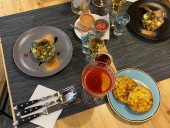 Экскурсия-дегустация "Традиции Пермской кухни" проходит в кафе-музее «Пермская кухня». Интерьер кафе дополняют и создают нужную атмосферу старинные предметы быта пермяков, книги. Гости сидят за столами, на которых уже находятся коми-пермяцкий салат, шаньги, бальзам «Парма».