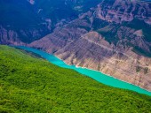 Глубочайший в Евразии, второй в мире, Сулакский каньон метражом 1920 м поборол Колорадо! На его обрывах «ах, как кружится голова», еще бы – под ногами разверзается бездна! Но дно есть – это «полоска неба» реки Сулак. Путешествие на Кавказе в рамках экскурсионного тура ведет к Чиркейской ГЭС, мощнейшей на Северном Кавказе, с плотиной арочного типа, высочайшей в Европе – 233 м! ГЭС создала рукотворное водохранилище, — Чиркейское озеро. По лазурно-голубой воде плавают катера, летом купаются, отдыхают на пляже. Далее в путешествии на Кавказе нас зовет мир бархана Желтый песок, где снимался фильм «Белое солнце пустыни». Золотое чудо вне пустыни – загадка даже для ученых!