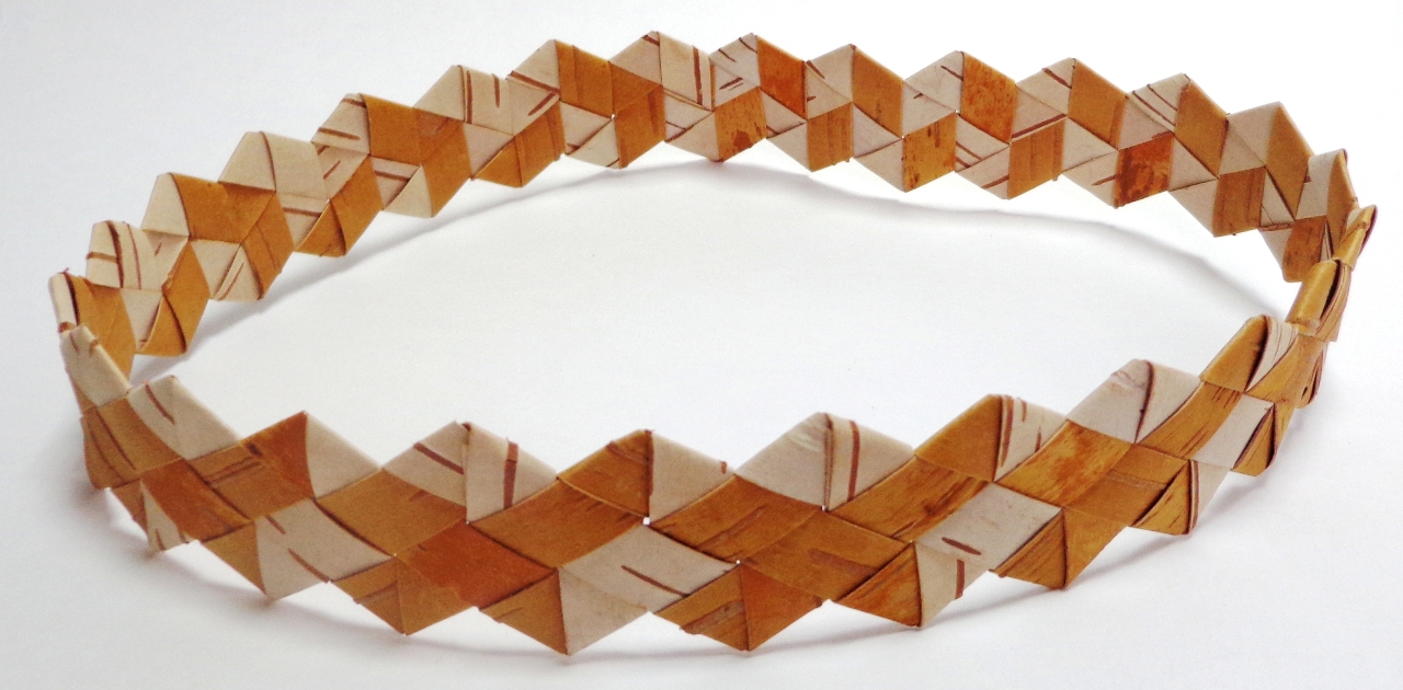 Очелье (ободок, берегиня) выполнено традиционным способом плетения из бересты (начало плетения и конец сомкнуты по рисунку плетения в непрерывное кольцо), подходит как женщинам, так и мужчинам.