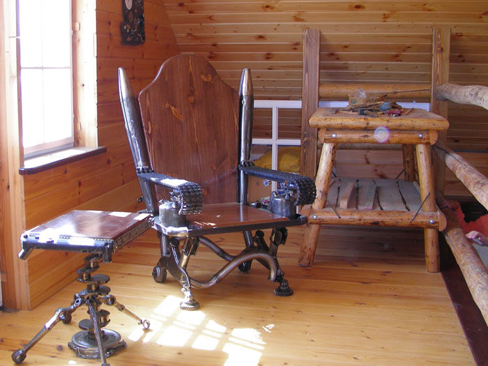 Есть еще и шкаф в виде контрабаса из шестеренок, цепей, дерева!!! Фантазия и сварочный аппарат, с помощью этого Сергей создает свои музейные экспонаты из бензобаков, шестеренок, болтов и других железяк. Много всего необычного, т. ч. рекомендую посетить. Запоминается! А музей работает до темна. И где ж еще ему быть, как не в Тарусе?...