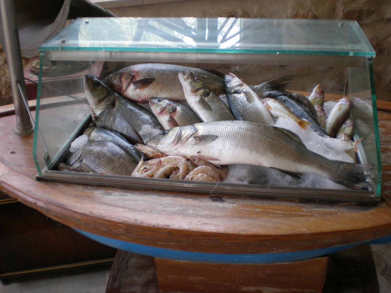 Теперь о закуске. Понятно, что местное меню в значительной степени состоит из свежих фруктов и ягод, а также даров моря, среди которых главными дарами считаются раба барабулька, дорада, сибас, естественно, тунец и, конечно, креветки.