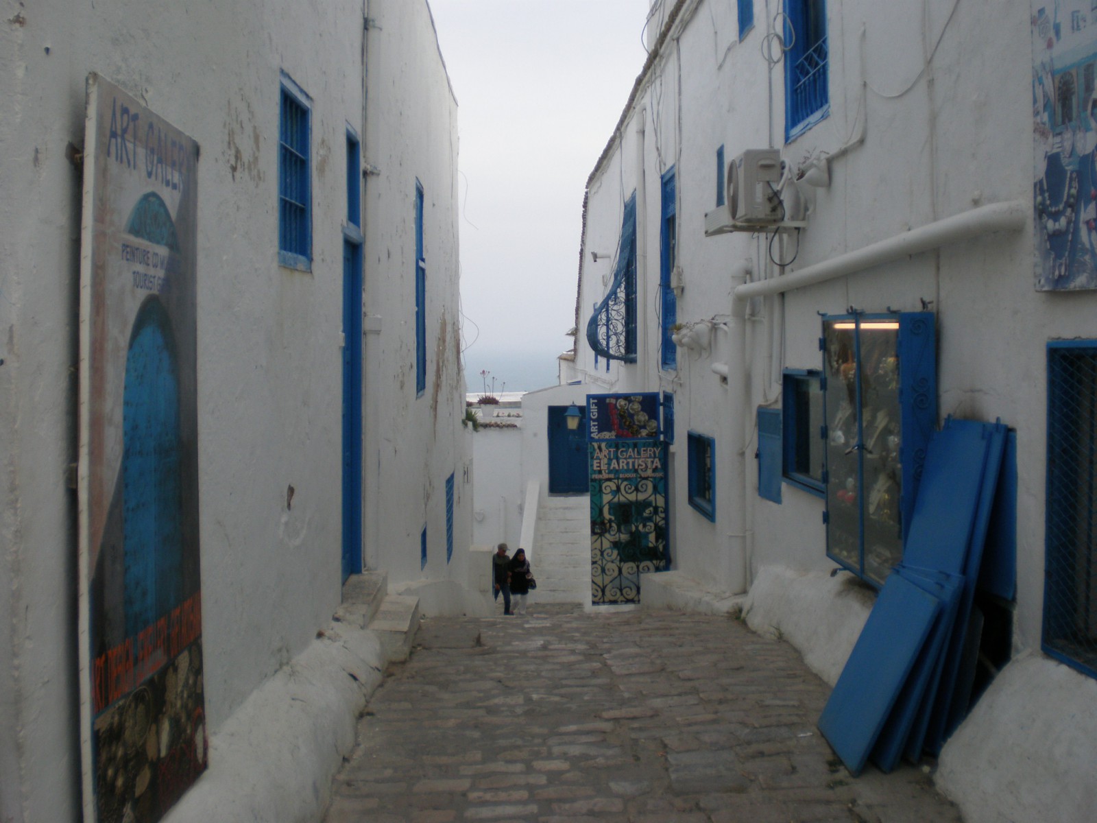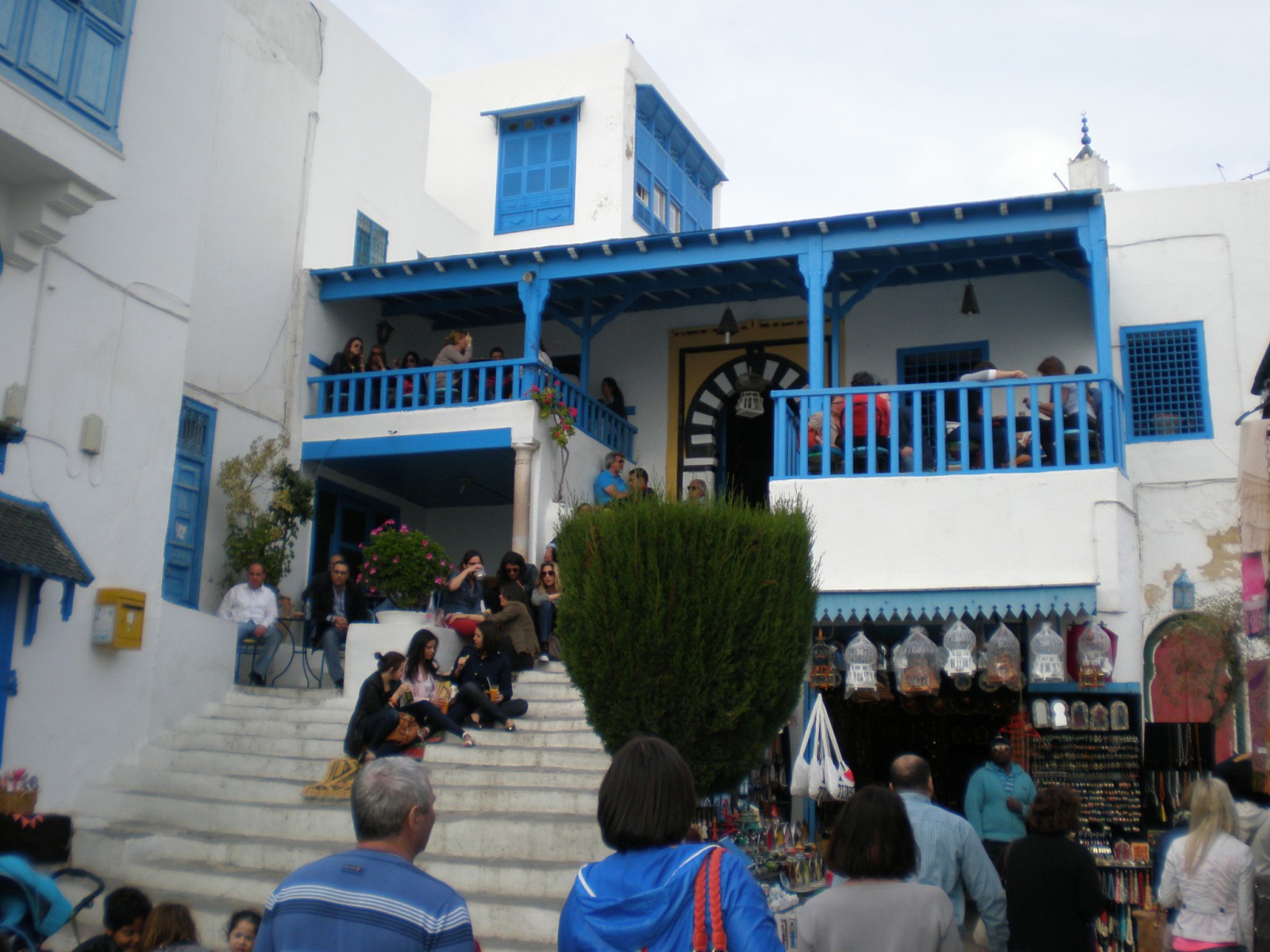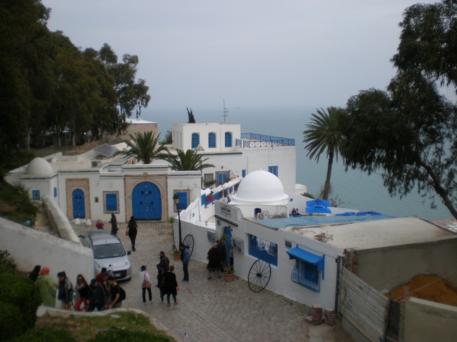 Достаточно симпатичным показался не большой городок на берегу Средиземного моря Сиди-Бу-Саид, который расположен на высоком холме над Тунисским заливом. Все дома и постройки белого цвета, а двери, ставни и решетки – ярко синие. Белый цвет – символизирует свободу, а синий – море.