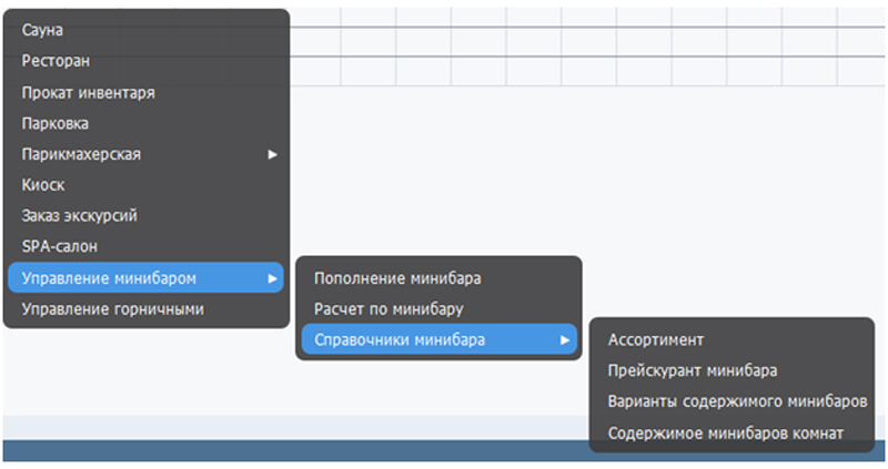 Даже казалось бы простая система управления минибарами требует реализации большого числа справочников. Может возникнуть вопрос, а не будет ли слишком сложно пользоваться такой системой. Ответ отрицательный. Все справочники скрываются от посторонних глаз. Конечный пользователь будет видеть только два пункта меню: «Пополнение минибара» и «Расчет по минибару».