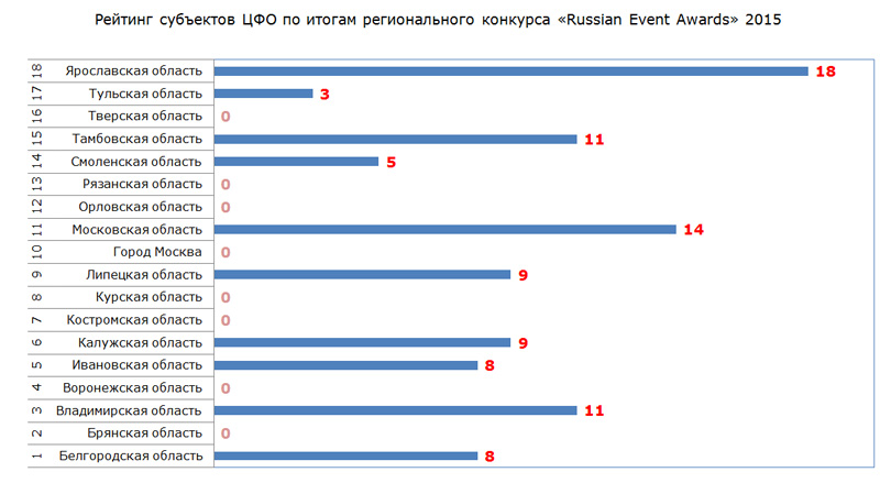 Рейтинг регионов по итогам регконкурса Национальной премии «Russian Event Awards» Центральной России