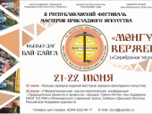 Республиканский фестиваль мастеров прикладного искусства «МѲҢГҮН КЕРЖЕК» («СЕРЕБРЯНОЕ ТЕСЛО») с межрегиональным и международным участием пройдет во второй раз в селе Кызыл-Даг Бай-Тайгинского района 21-22 июня. В селе Кызыл-Даг, известном на весь мир как деревня камнерезов, разместится ярмарочная площадка с мастерами со всей Тувы и соседних республик Алтай и Хакасия. Гостей и участников фестиваля ждет насыщенная программа с ярмаркой-конкурсом изделий мастеров, кон...