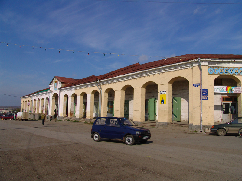 Здание представляет собой замкнутый многоугольник по периметру, которого располагаются торговые ряды. Снаружи вдоль торговых помещений – крытая галерея. Так же внутри – двор площадка, которая использовалась для продажи кустарных товаров. Длина – 93,8 метров, ширина – 15,6 метров, высота – 8,7 метров.