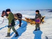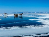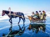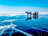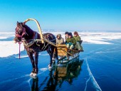 После завтрака трансфер из отеля-шале «Байкальские Терема на берег оз. Байкал. После проверки снаряжения и готовности тех.поддержки выход на санях с 1 лошадью в ледовый путь через Великий Байкал ( 45 км). Пикник на льду на середине Байкал