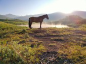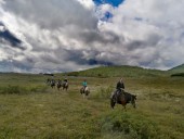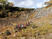 - После отдыха лошади седлаются и группа возвращается обратно к р. Железная в палаточный лагерь, ужин, отдых.