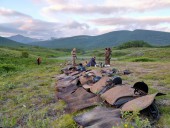 - После ланча группа собирается в путь до места, где разбивается палаточный лагерь и организуется ночлег - к р. Железная. Переход до р. Железная протяженностью около 4 км, по кедровой и ягодно-ягельной тундре. По пути возможны встречи с евражками, которые здесь живут повсеместно большими колониями.